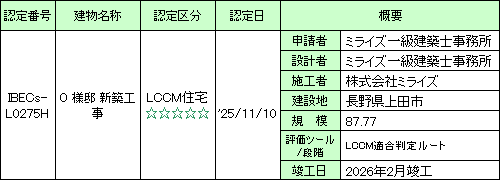 LCCM住宅認定取得住宅一覧