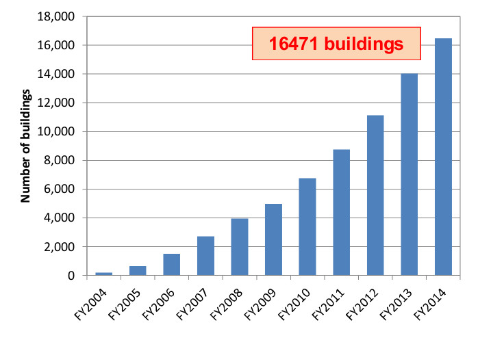 Fig17. Cumulative numbers of the certified buildings (as of March 2016)