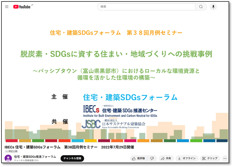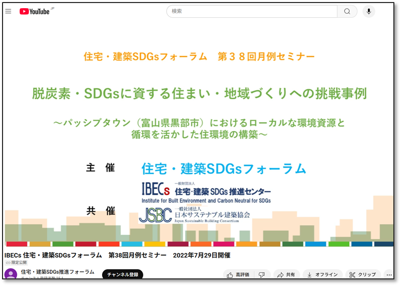 脱炭素・SDGsに資する住まい・地域づくりへの挑戦事例〜パッシブタウン(富⼭県⿊部市)におけるローカルな環境資源と循環を活かした住環境の構築〜
