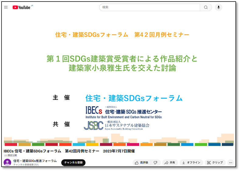 第2回SDGs建築賞受賞者による作品紹介と建築家小泉雅生氏を交えた討論