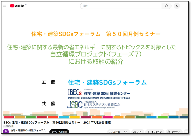 住宅・建築に関する最新の省エネルギーに関するトピックスを対象とした自立循環プロジェクト(フェーズ7)における取組の紹介